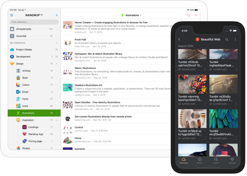 Lancez Raindrop.io depuis votre Dock/barre des tâches
